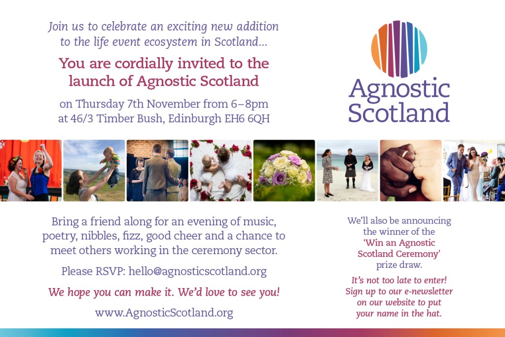 Our vision for Agnostic Scotland came about after many years of us individually offering Independent Ceremonies in Scotland and realising that there was a definite gap in the life event ecosystem of Scotland.